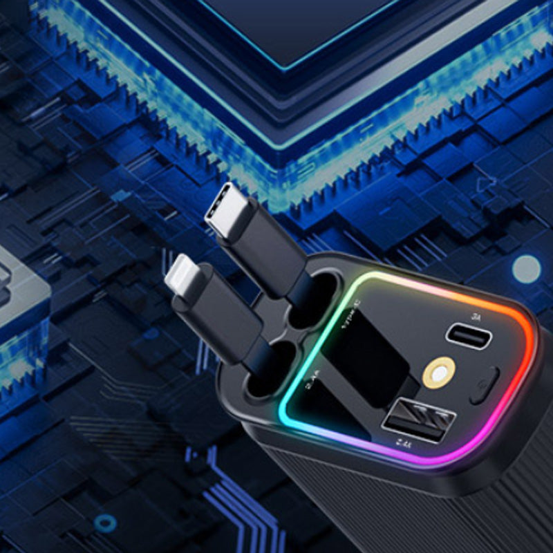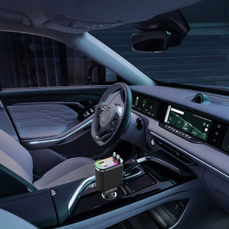 120-W-Autoladegerät mit violettem Stern-Ambientelicht und einziehbarem Kabel