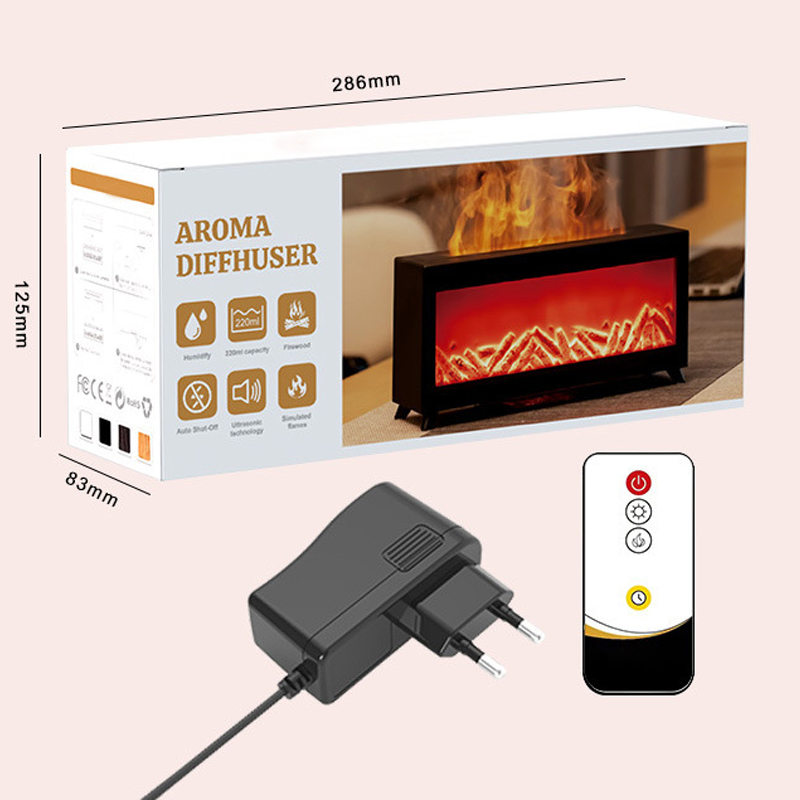 Lieferumfang: 1 * Aromatherapie-Diffusor mit Kaminflammen-Effekt in 7 Farben + Fernbedienung + Netzteil + Bedienungsanleitung