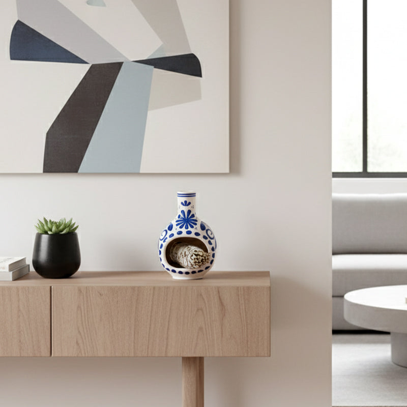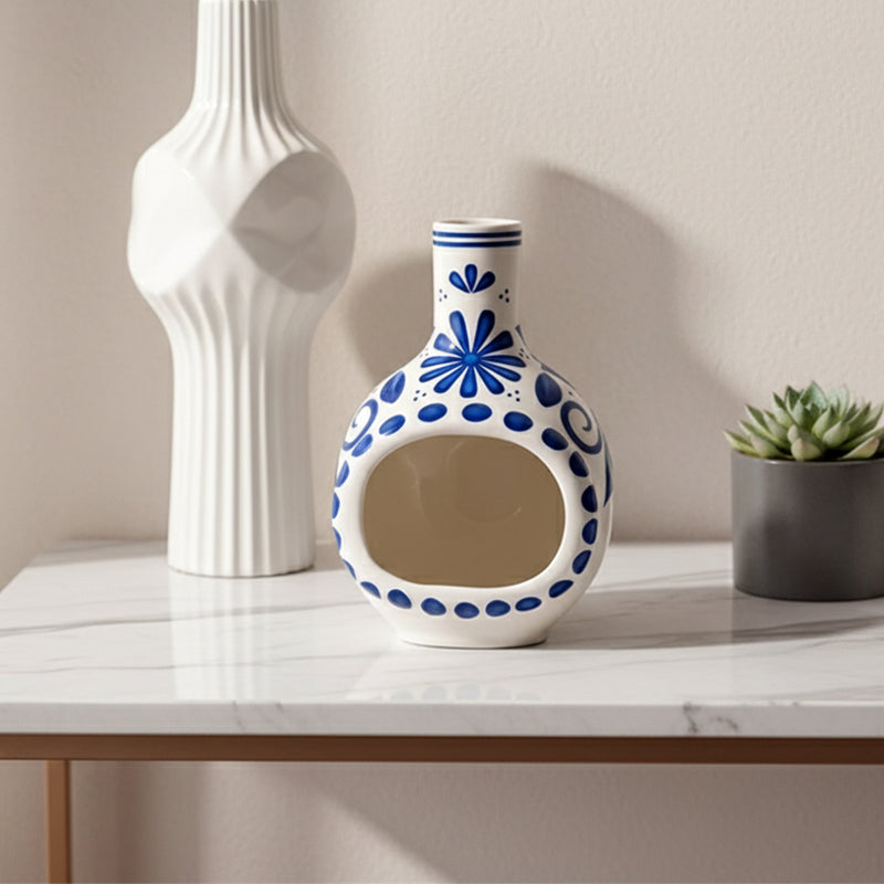 ELEGANTES DEKORATIONS-ELEMENT - Mit einem zeitlosen blau-weißen Blumenmuster dient dieser Brenner als atemberaubendes Stück Wohnkultur. Er verleiht jedem Meditationsraum oder Wohnbereich eine Note von Ruhe und Eleganz.