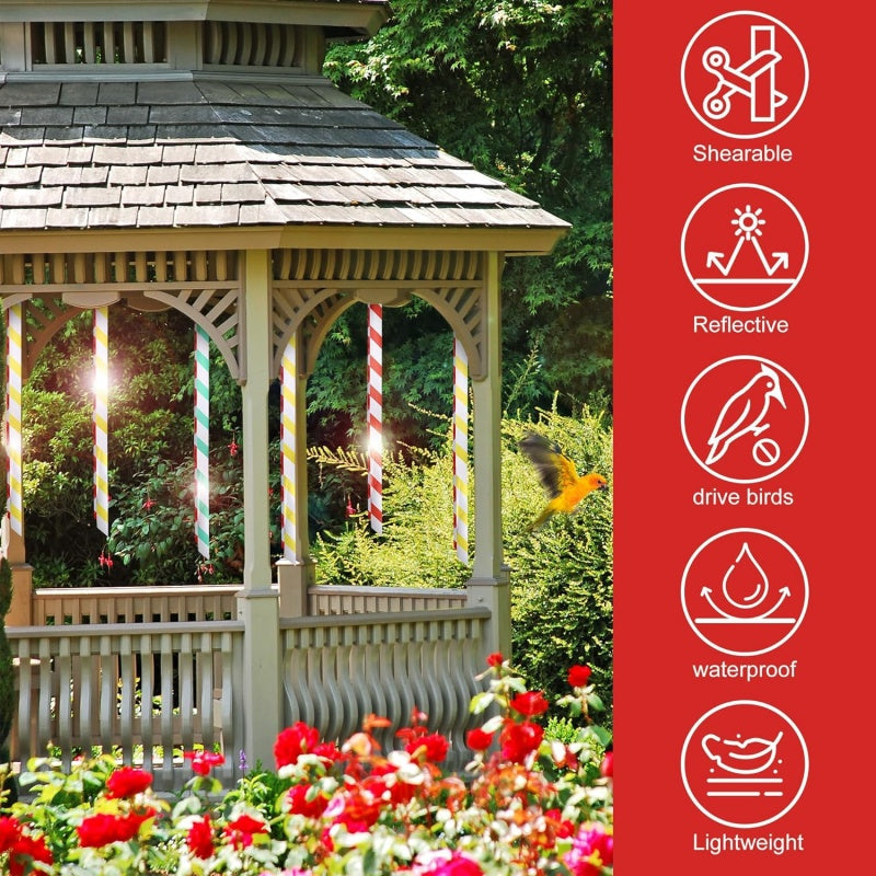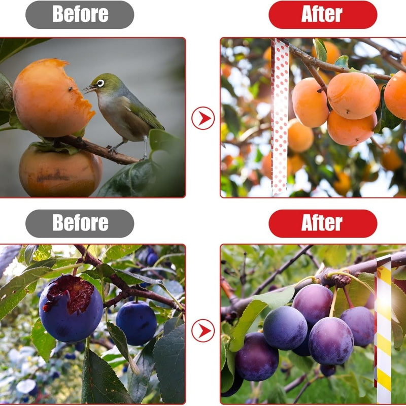 EINFACH ZU MONTIEREN - Das leichte Design ermöglicht eine einfache Anbringung an Bäumen, Zäunen und Gartenpfählen. Rollen Sie das Band einfach ab und hängen Sie es am gewünschten Ort auf, um sofort mit der Vogelabwehr zu beginnen.