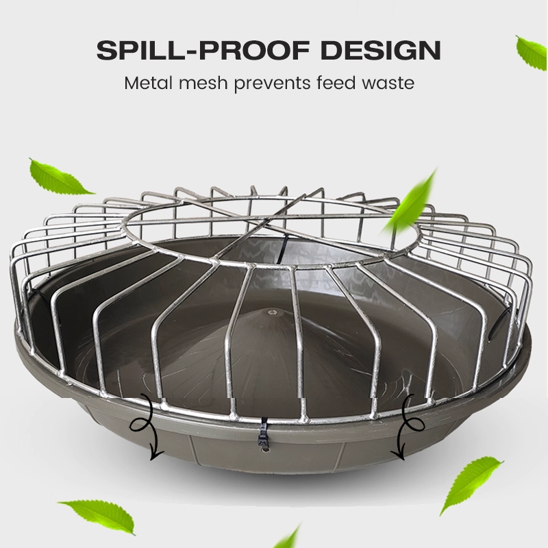 SPRITZSCHUTZ-TECHNOLOGIE – Das erhöhte Metallgitter ermöglicht natürliches Picken, hält Schmutz fern und verhindert Verschütten. Kein herausgescharrtes Futter mehr – jedes Korn bleibt sauber, trocken und erreichbar. Bei Regen oder Wind bleibt das Futter sicher.