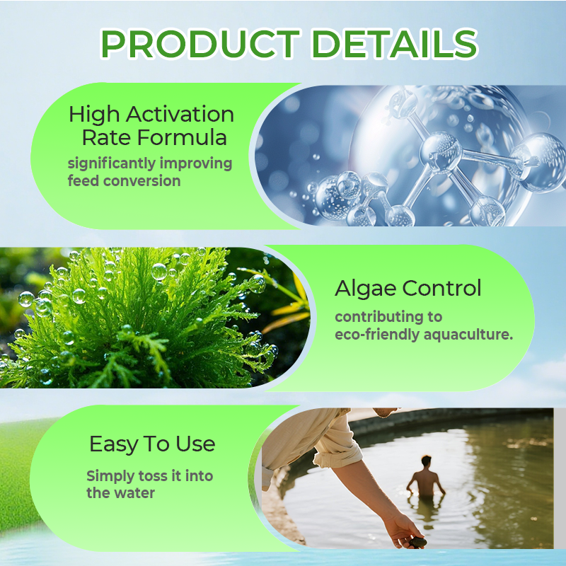 NATÜRLICHE & SICHERE FORMULIERUNG 🌱✅ – Frei von Antibiotikarückständen. Etabliert ein ausgewogenes mikrobielles Ökosystem für grünes und gesundes Wachstum. Geeignet für diverse Aquakulturarten wie Fische und Garnelen – garantiert Lebensmittelsicherheit.