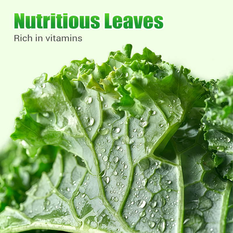 AUSGEZEICHNETER GESCHMACK UND NÄHRSTOFFGEHALT – Die zarten, geschmackvollen Blätter sind reich an essentiellen Vitaminen und Mineralien, ideal für Salate, Smoothies und gekochte Gerichte. Mit einer Erntezeit von 2–4 Monaten liefern diese Grünkohlpflanzen mehrere Ernten pro Saison und gewährleisten eine stetige Versorgung mit frischem, gesundem Grün.