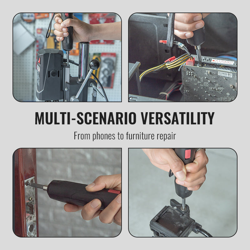 VIELSEITIG EINSETZBAR: Perfekt für Möbelmontage, Türschloss-Installation, Reparatur von Smartphones, Laptops und Automobilteilen. Funktionen sowohl als Präzisionsschrauber wie auch als Mini-Bohrer – das unverzichtbare Werkzeug für Heimwerker, Techniker und Hausbesitzer.