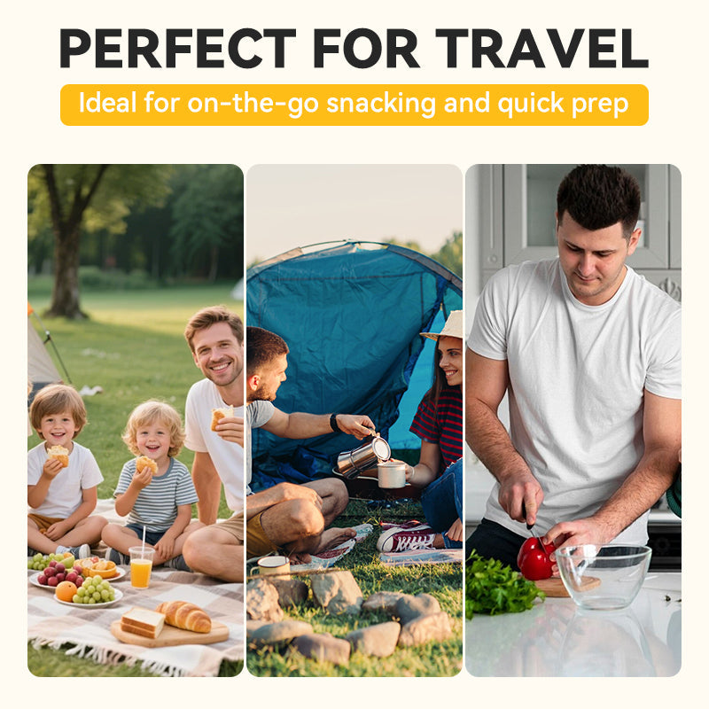 3-IN-1 MULTI-TOOL: Kombiniert einen Obstschäler, ein Mini-Messer und einen Kartonenschneider in einem kompakten Werkzeug – perfekt für alltägliche Küchenaufgaben, Reisen und Pakete öffnen.