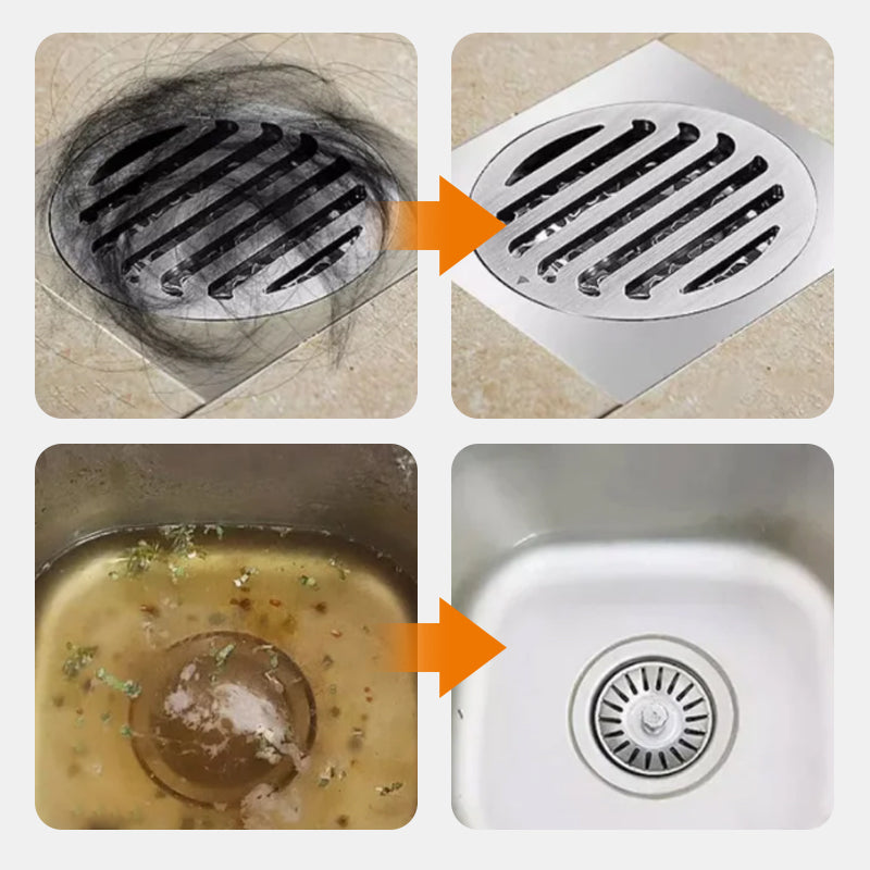 MULTIPURPOSE- Dieses Produkt kann verwendet werden, um verstopfte Haare aus Abflüssen im Badezimmer, Waschbecken und Badewannen, verstopfte Toilettentücher und verstopfte Essensreste aus der Küchenspüle zu entfernen. Es ist für verschiedene Rohrleitungsmaterialien geeignet, wie z.B. Gusseisenrohre, Edelstahlrohre und PVC-Rohre, aber nicht für Aluminiumrohre, Kunststoffrohre, Rohre mit Klebebandverbindungen und auch nicht für die Handhabung von Metallverstopfungen wie Nägel, Metallschmuck, etc.