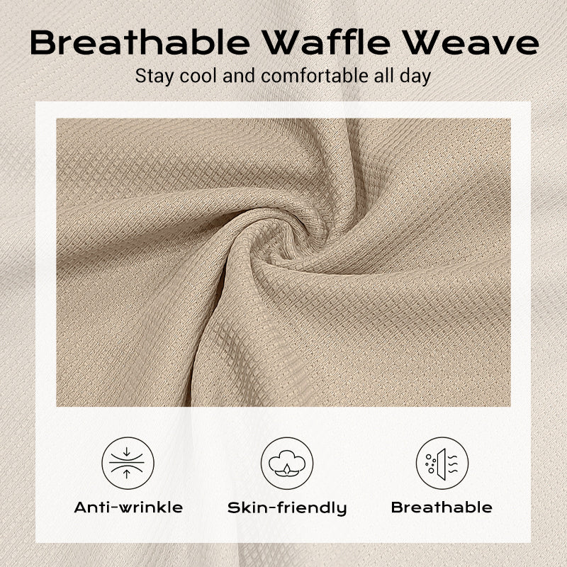 WAFFELSTRICK-STOFF - Das atmungsaktive, strukturierte Material hält Sie kühl und komfortabel und verleiht Ihrem Look eine Note anspruchsvoller Textur. Es ist ideal für warmes Wetter und legere Eleganz.